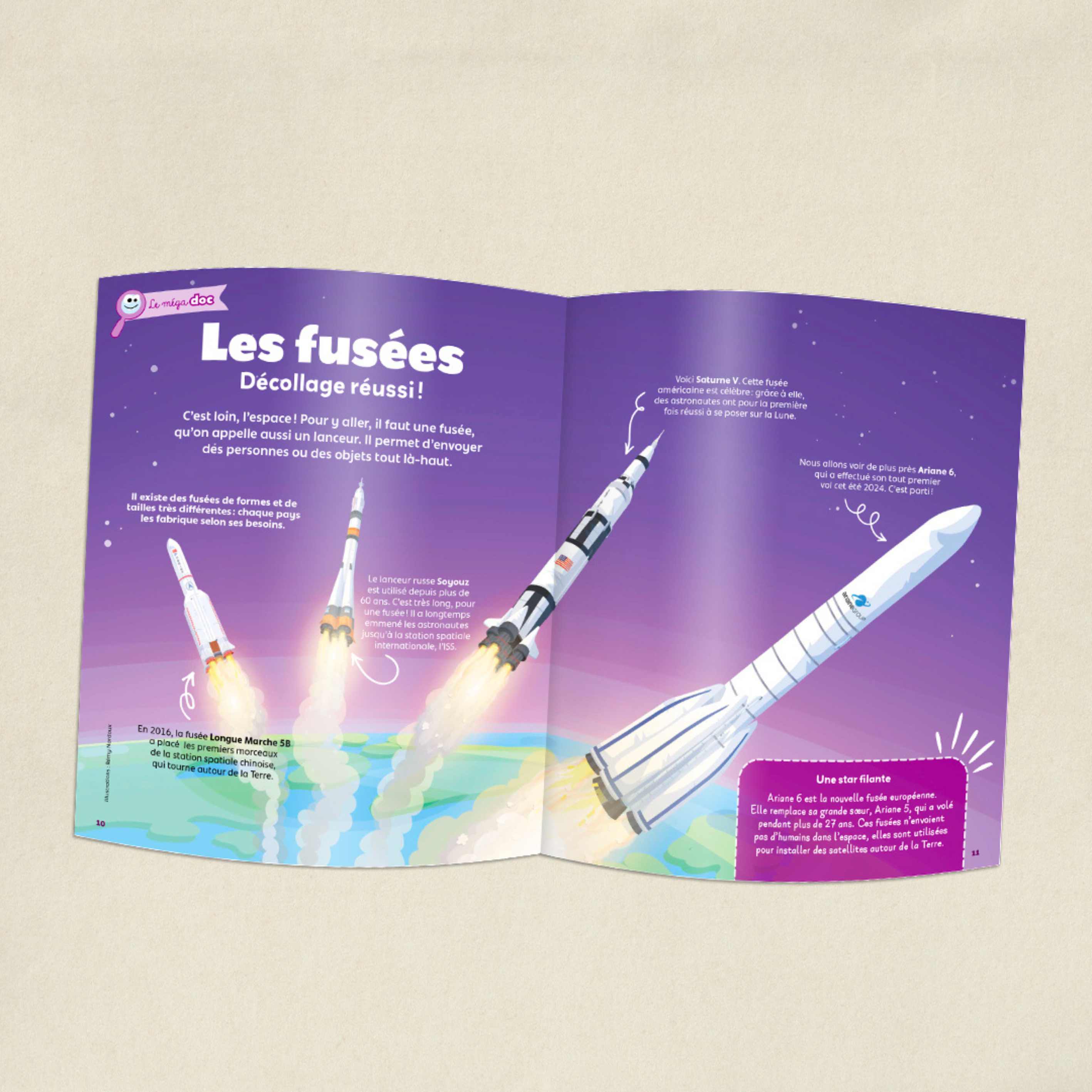 - 1 magazine avec un dossier éducatif sur les fusées et leurs lancements