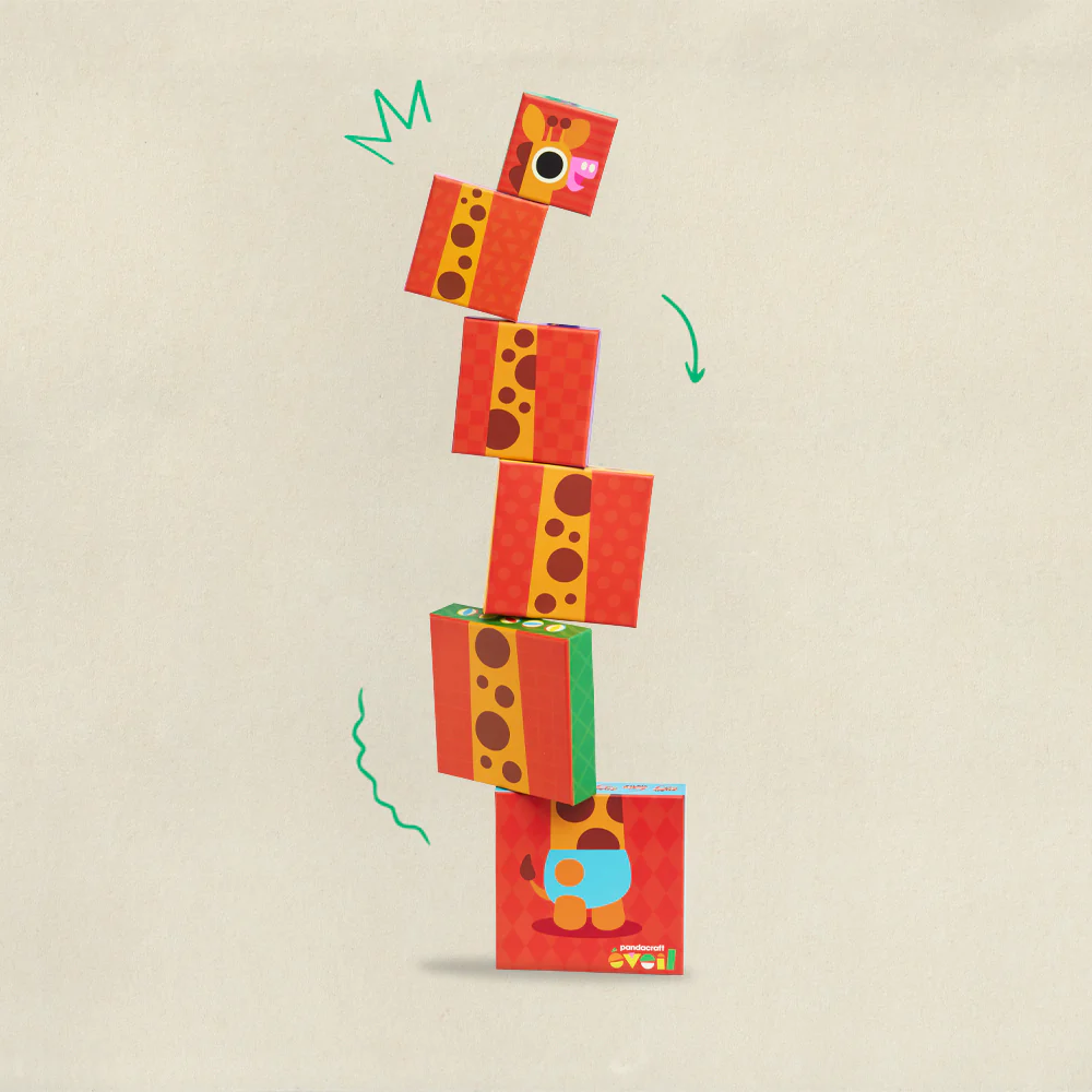 Des cubes à empiler, aligner, mélanger et faire tomber ! Une activité grandiose qu’il peut faire seul ou accompagné, à la découverte de la notion de taille et de gravité ! Regardez ensemble toutes les illustrations sur les faces pour mieux comprendre les différentes tailles.
