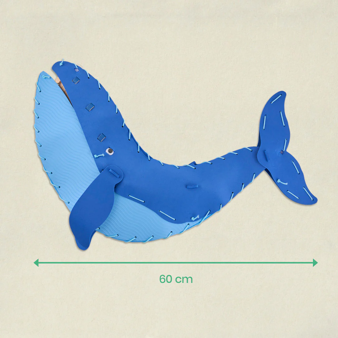Avec ce kit, assemble une baleine bleue géante grâce à une technique de tissage surprenante, puis expose-la fièrement dans ta chambre ! Une activité manuelle qui allie construction et découverte scientifique.