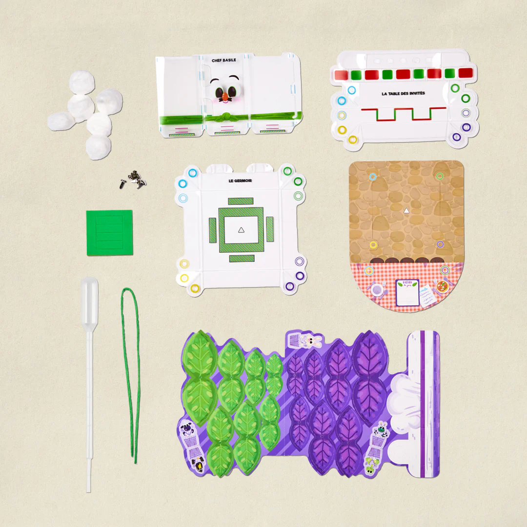 Bienvenue au restaurant de Basile ! Après avoir fabriqué sa structure, ses tables et ses décorations, place tes invités et prépare-leur un super festin en faisant pousser ton basilic. Sera-t-il vert ou violet ? On lance les paris !